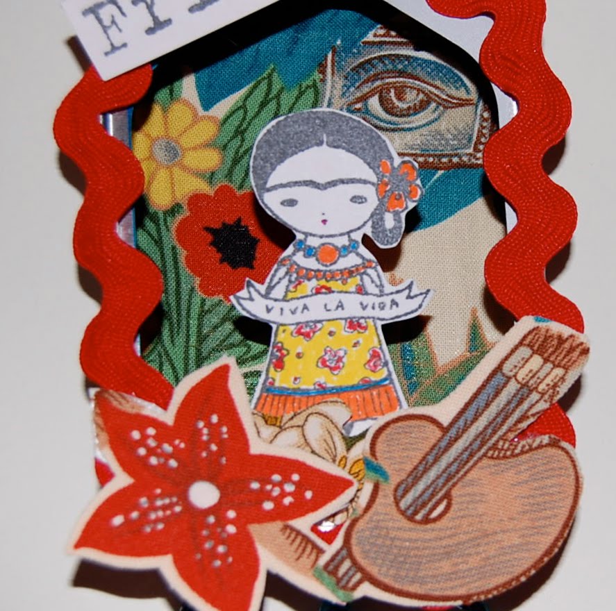So after completing my Frida Sardine can altered art piece I was quickly reminded that I am not just a maker of aprons and purses. So I started laying out all of my special fabrics to make an art quilt - then I got distracted by the cute Little Red Riding Hood scrap and needed to turn it into something quickly! I started making these tiny art quilts, then I decided they would make great brooches. And now I can't wait to make more!
